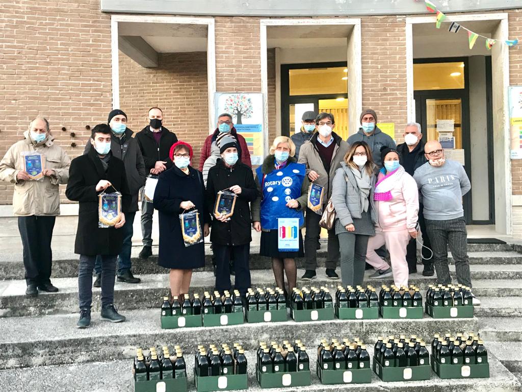 Progetto R&S – ROTARY & SOLIDARIETA’. Dopo quella del 17 dicembre scorso (consegna di pacchi-dono per le famiglie in difficoltà) l’attività del Rotary per il contrasto al disagio sociale è proseguita oggi 16 gennaio, con la donazione di 150 litri di olio extravergine di oliva (prodotto in Italia) al Banco Alimentare delle Associazioni del III° settore di Aprilia, in via Cattaneo. L’iniziativa è stata resa possibile grazie alla collaborazione tra il Rotary e l’Associazione Arte Mediterranea, che ha messo a disposizione quadri di suoi allievi per una vendita il cui ricavato è servito per l’acquisto di 150 bottiglie di questo importante componente della nostra dieta mediterranea.Il coordinatore del Banco Alimentare, Salvatore Saraniti, ha ringraziato i due presidenti Antonio De Waure di Arte Mediterranea e Maria Ferrante del Rotary Club Aprilia-Cisterna, coadiuvata dai soci Paolo Puccini, Simone Menegoni, Maurizio Del Medico, Silvana Aghilone e Elvis Martino (anche assessore al Comune di Aprilia per la Cultura), per aver accolto il suo appello alla donazione di olio extravergine, di cui il Banco era in questo momento particolarmente carente.La Presidente Maria Ferrante ha fatto presente che il Rotary sente in questo momento storico la primaria esigenza di sostenere le famiglie in difficoltà: per questo ha sviluppato il progetto “Rotary & Solidarietà” di cui il fatto odierno è solo un mattone di una più ampia ed ambiziosa costruzione, da realizzare, beninteso, con l’aiuto di tutti.