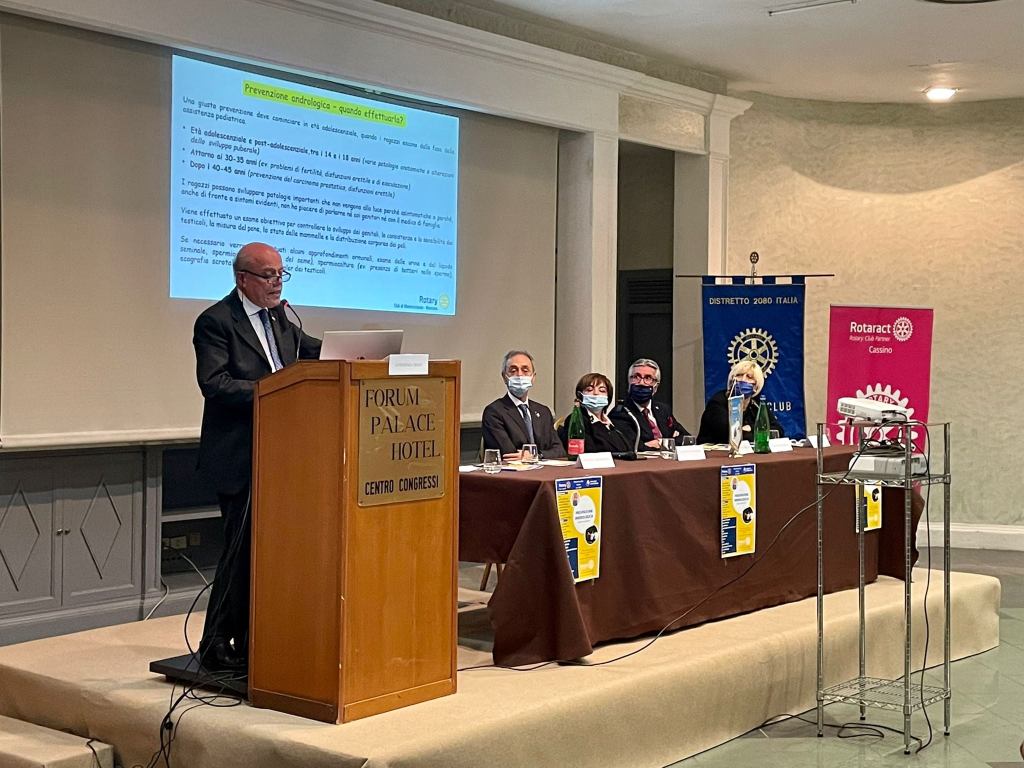 Dalla frase di Jim Rhon “Abbi cura del tuo corpo, è l’unico posto in cui puoi vivere” si è tratto il motto del progetto distrettuale di Prevenzione Andrologica, presentato e discusso venerdì 3 dicembre ’21 a Cassino in un seminario promosso dal Rotary Club di Cassino.Al seminario, seguito poi da una conviviale, hanno partecipato ben 13 Club, ovvero Albano Albalonga, Aprilia-Cisterna, Aprilia-Cisterna Costa Neroniana, Fiuggi, Fondi-Terracina, Formia-Gaeta, Frosinone, Latina, Latina San Marco, Monterotondo Mentana, Pomezia Lavinium; è stata l’occasione giusta per inquadrare le importanti caratteristiche del progetto e soprattutto delle sue finalità.Attraverso la messa a servizio di professionalità specialistiche di rotariani medici andrologi, endocrinologi, urologi sarà possibile mettere a disposizione dei ragazzi in età post-adolescenziale un importantissimo strumento di prevenzione da malattie afferenti agli organi riproduttivi maschili. Durante il seminario è emerso in modo deciso, che gli effetti evidenti dell’assenza della visita svolta in occasione della visita medica prima del servizio militare, inducono successivamente grossi problemi di fertilità e lo sviluppo di altre gravi patologie.Hanno reso possibile ed avviato il seminario: Luigi Pio Di Murro Presidente R.C. Cassino, Rosanna Purificato Assistente Governatore , Roberto Di Giorgio Coordinatore Convegno, Maria Ferrante membro Commissione distrettuale di progetto, mentre sono intervenuti come relatori Daniela Tranquilli, PDG Biologo e Coordinatrice Progetto, Antonino Crinò Endocrinologo rotariano, Mauro Vermiglio Urologo rotariano.Nella discussione il presidente del RC. Aprilia-Cisterna Michele Volpe ha esposto ai colleghi presidenti degli altri club, le esperienze e gli importanti risultati ottenuti grazie in particolare all’impegno profuso da Maria Ferrante; Maria ha svolto inizialmente un grande lavoro nell’attuazione e realizzazione del progetto nel territorio, successivamente ha collaborato fattivamente alla diffusione nei territori distrettuali.
